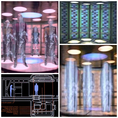 El escáner molecular recibe en tiempo real una imagen una resolución cuántica del sujeto que se movía mientras los carretes y bobinas de transición de la fase principal convierten el sujeto en un flujo de materia desintegrada a nivel subatómico.
