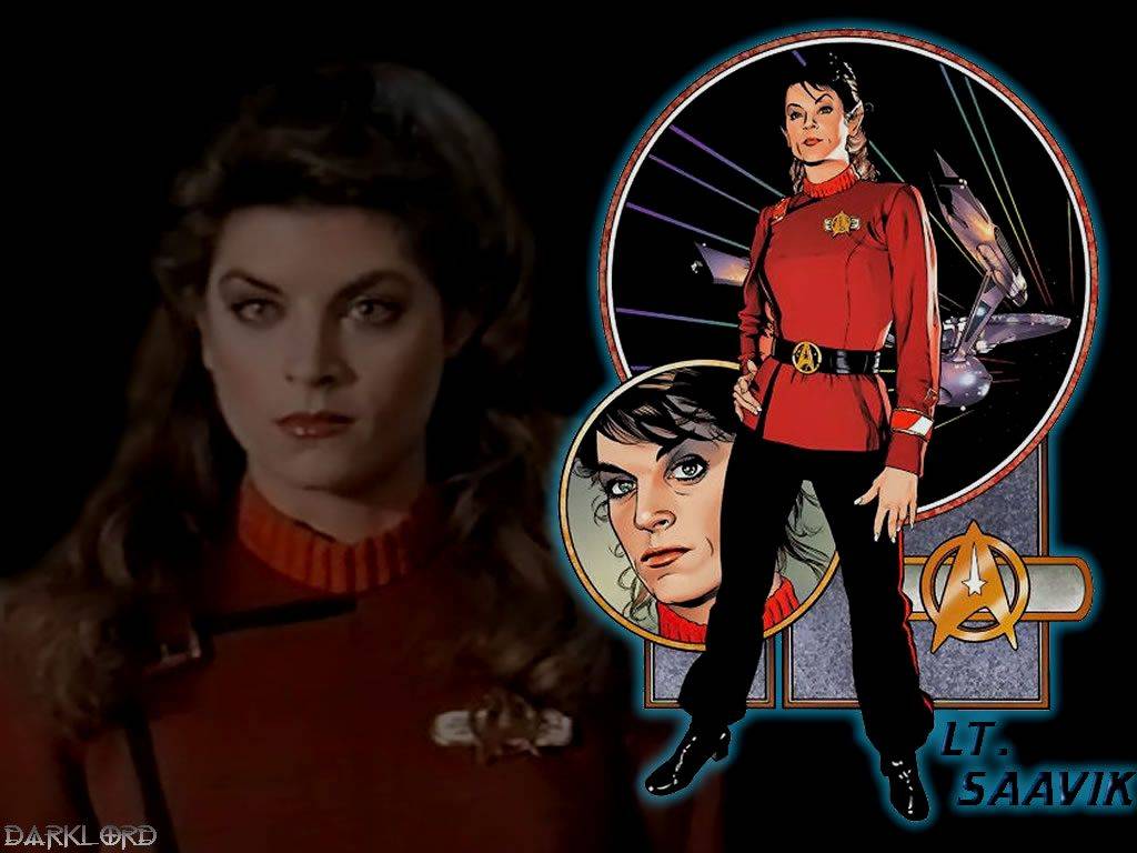 Saavik fue un personaje que nunca se exploró totalmente en la pantalla. Tiene, sin embargo, narraciones y descripciones precisas, en novelas y cómics, aunque ninguna de estas fuentes se consideran para su historia. De acuerdo con las novelas y los cómics, Saavik nació el Hellguard, una colonia abandonada Romulana. Ella es mitad vulcana y mitad romulana. La autenticidad de este dato se ha debatido durante más de dos décadas. Sin embargo, esto explica su comportamiento emocional en las películas, ya que adopta una actitud correcta vulcana, más en apariencia.
