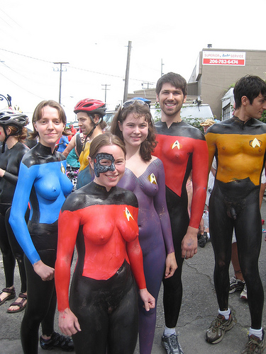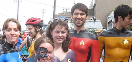 Fotografía de unos trekkies usando Body Painting (PINTURA CORPORAL)