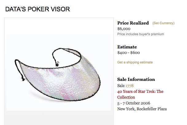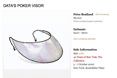 Ted Moustakis, es un «trekkie» (fan de Star Trek) desde hace 40 años, y compró en la subasta de Christie’s varios objetos de la serie (una visera de póquer, una mesa de póquer y un uniforme) por un total de 23.400 dólares.