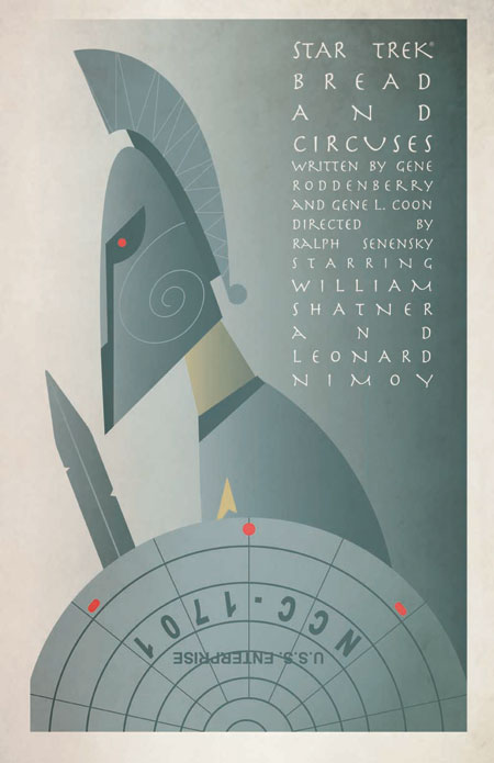 StarTrek.com: Excelentes opciones para «Bread and Circuses», con el casco Enterprise como un escudo, y el angular, Spock como casco. Es como si Star Trek  homenajeara a Espartaco o 300. ¿Como fue que la idea del casco surgiera así
