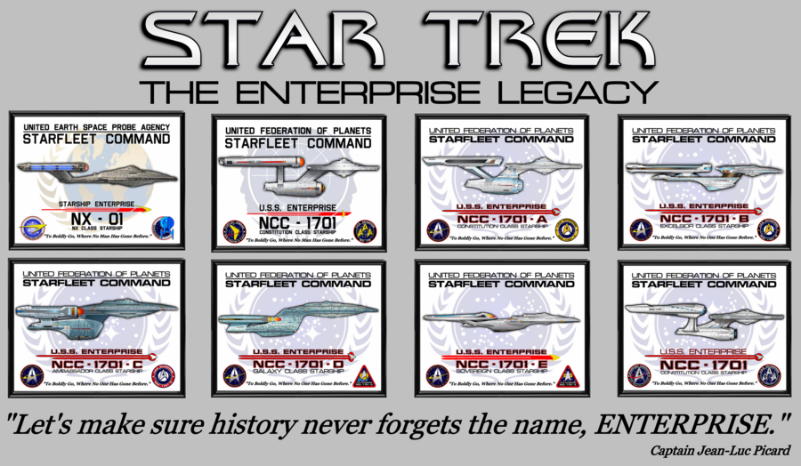 Un cartel con las ocho versiones de la USS Enterprise de Star Trek que fueron vistas en el universo de Star Trek,