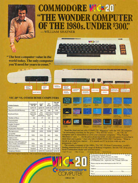 Sin embargo, y a pesar de estar codo a codo con las consolas de videojuegos más baratas en los escaparates, consiguió convertirse en un éxito. La campaña publicitaria de Commodore seguramente ayudo mucho, sobre todo aquellas en que su portavoz, al actor William Shatner (el capitán Kirk de Star Trek) preguntaba «¿Por qué comprar solo un vídeo juego?» en referencia a la capacidad del VIC-20 de ser “programado” por sus usuarios.