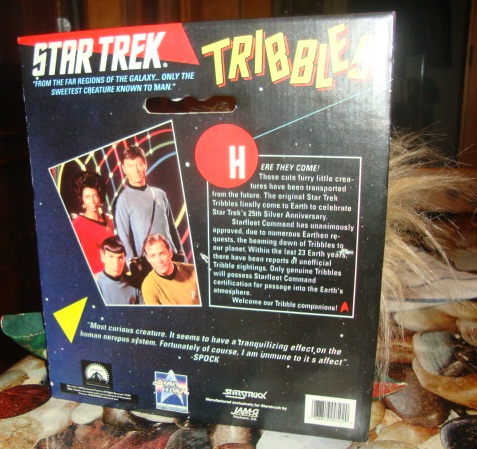 Una replica de un Tribble, editado en 1991, con certificado muy simpatico firmado por Cyrano Jones, el vendedor de estos seres, y el Capitán James Tiberius Kirk, certificando que es un descendiente de los aparecidos en la serie Star Trek La Serie Original.