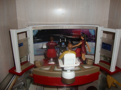 El puente de mando de Star Trek 2009, con Scotty, Uhura y Kirk